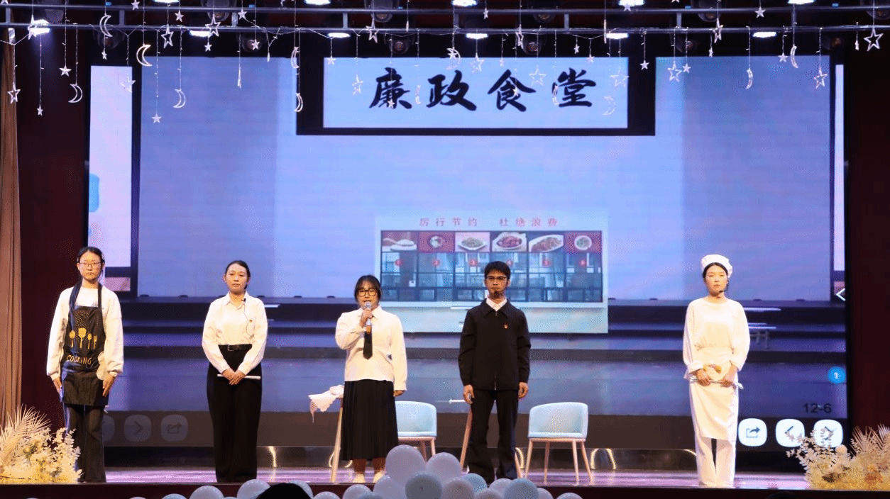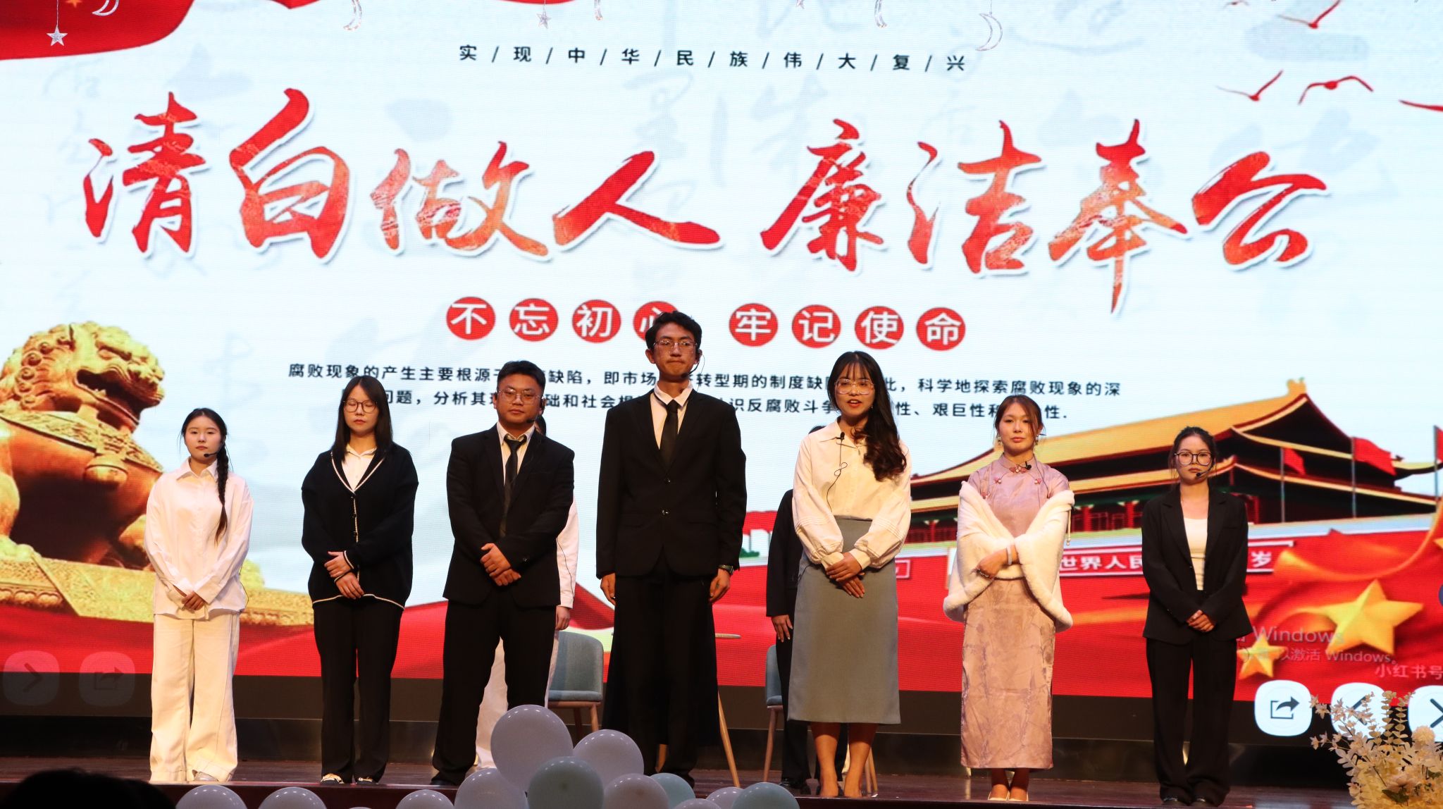 晚会期间特别设置的廉洁谜语抢答和廉洁承诺两个环节,让师生在趣味抢答里学习廉洁知识,在握拳立誓中坚定践行廉洁的决心。同时,晚会专门穿插了优秀学子竞赛表彰环节,对学院学子在各类学科竞赛、科创比赛中斩获佳绩的代表进行表彰,既展现了学院学子在专业领域的过硬实力,也以榜样力量激励更多同学深耕专业、奋勇争先。