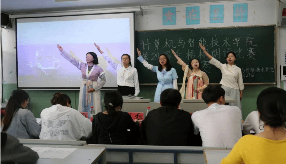 为大力推广国家通用语言文字、提升学生普通话整体水平,发挥经典诵读活动在校园文化建设中的积极作用,9月27日14:30,计算机与智能技术学院第24届“金梧桐”朗诵比赛在笃学楼228教室如期举行。本次比赛由计算机学院团委书记赵治红、数学与统计学院团委学生会主席团成员程旭峰、余永涛、杨国军,计算机学院团委学生会主席团成员担任评委。
