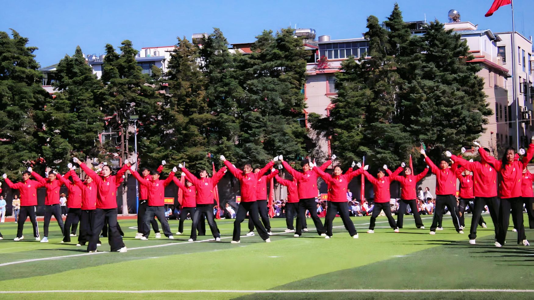 团体操和啦啦操的队员们身着靓丽的服装,活力登场。他们动作干净利落,舞步整齐划一,队形变换自如,每一个节拍都展现着团队高度的默契,传递着昂扬的青春力量。